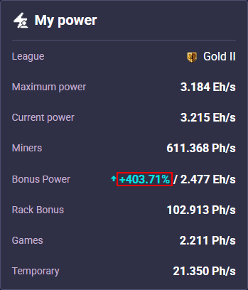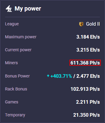 | Miners power: | ⓘ | ||